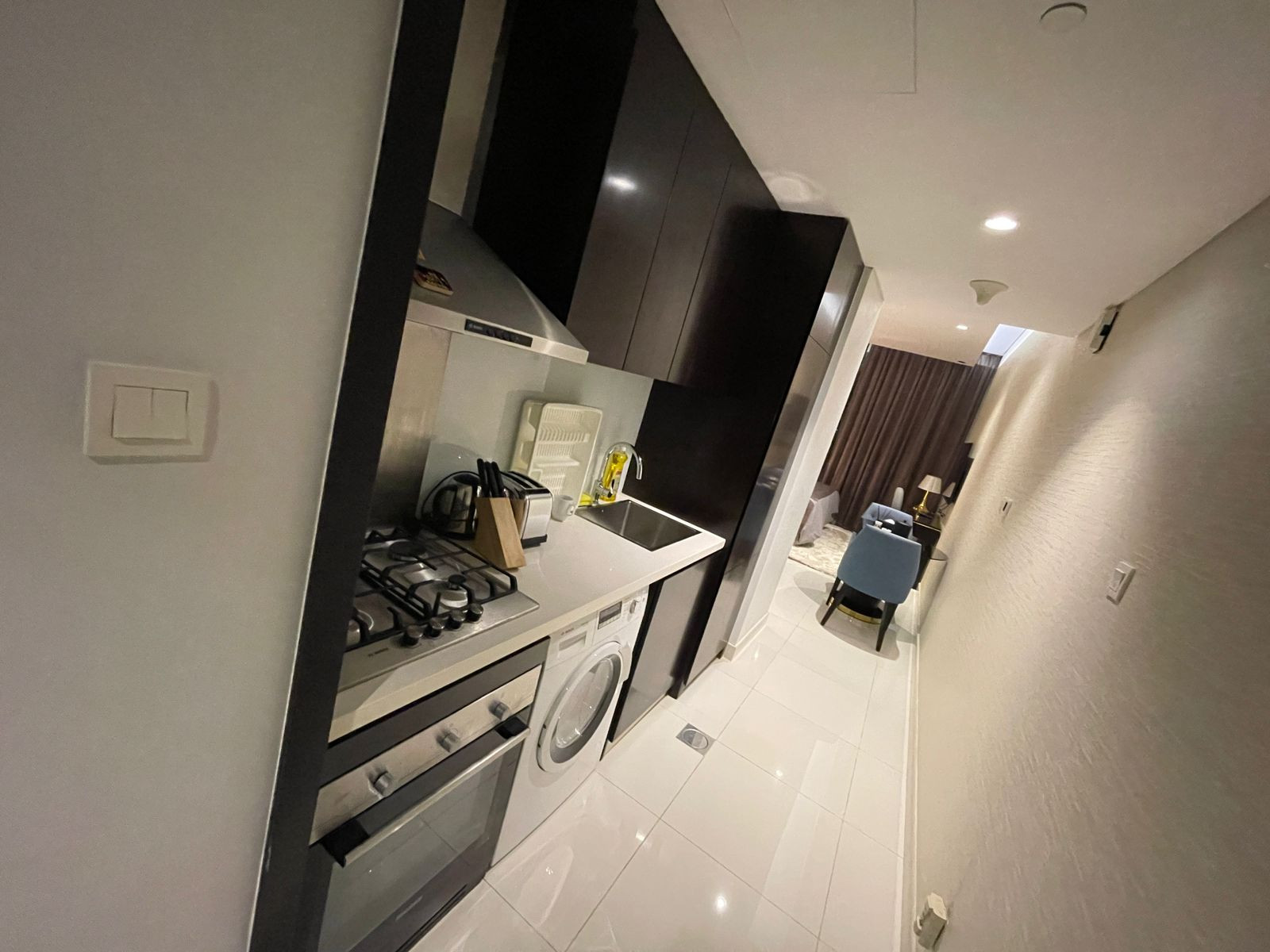 Dormitorio/sala de estar con rincón cocina