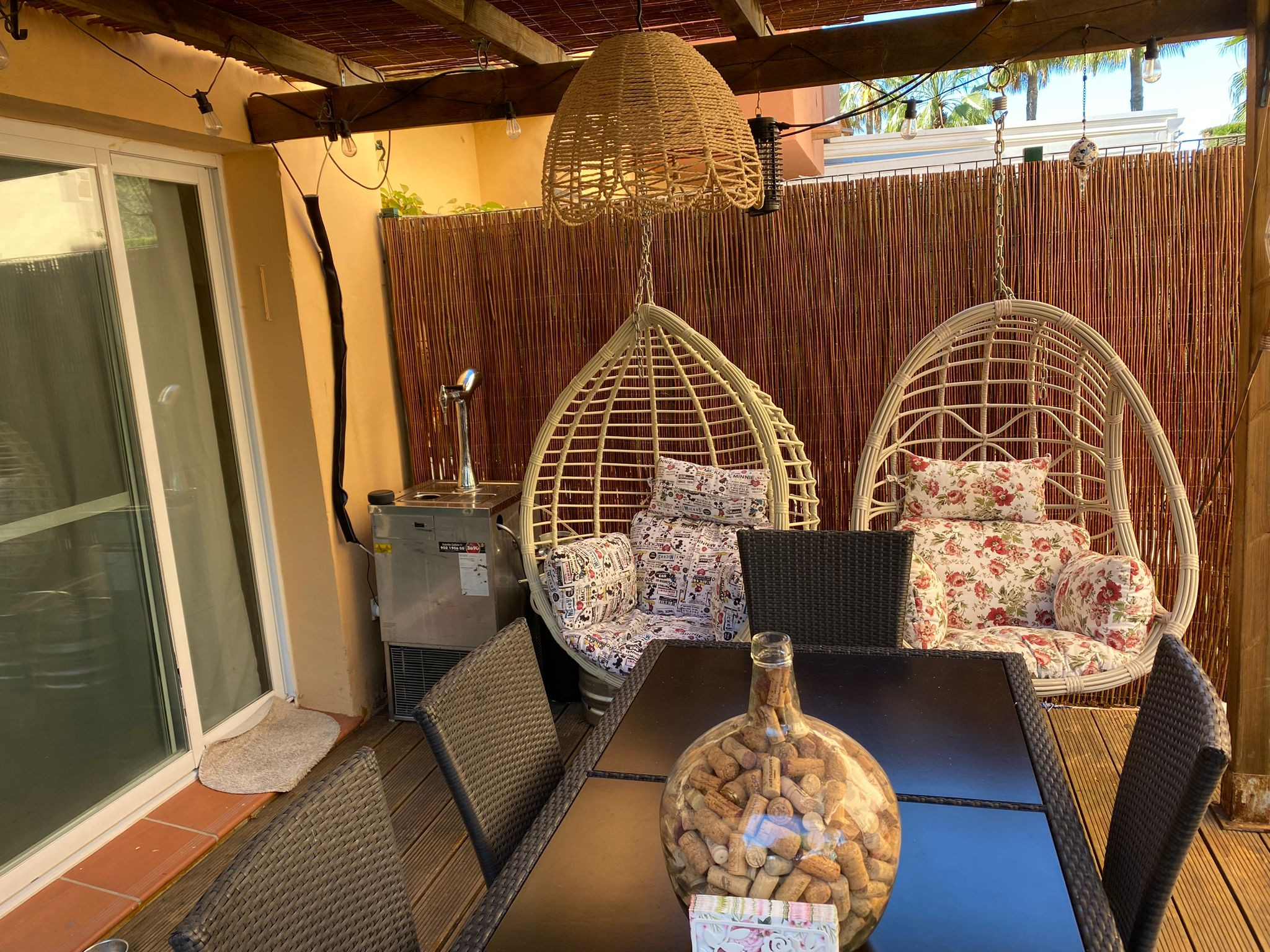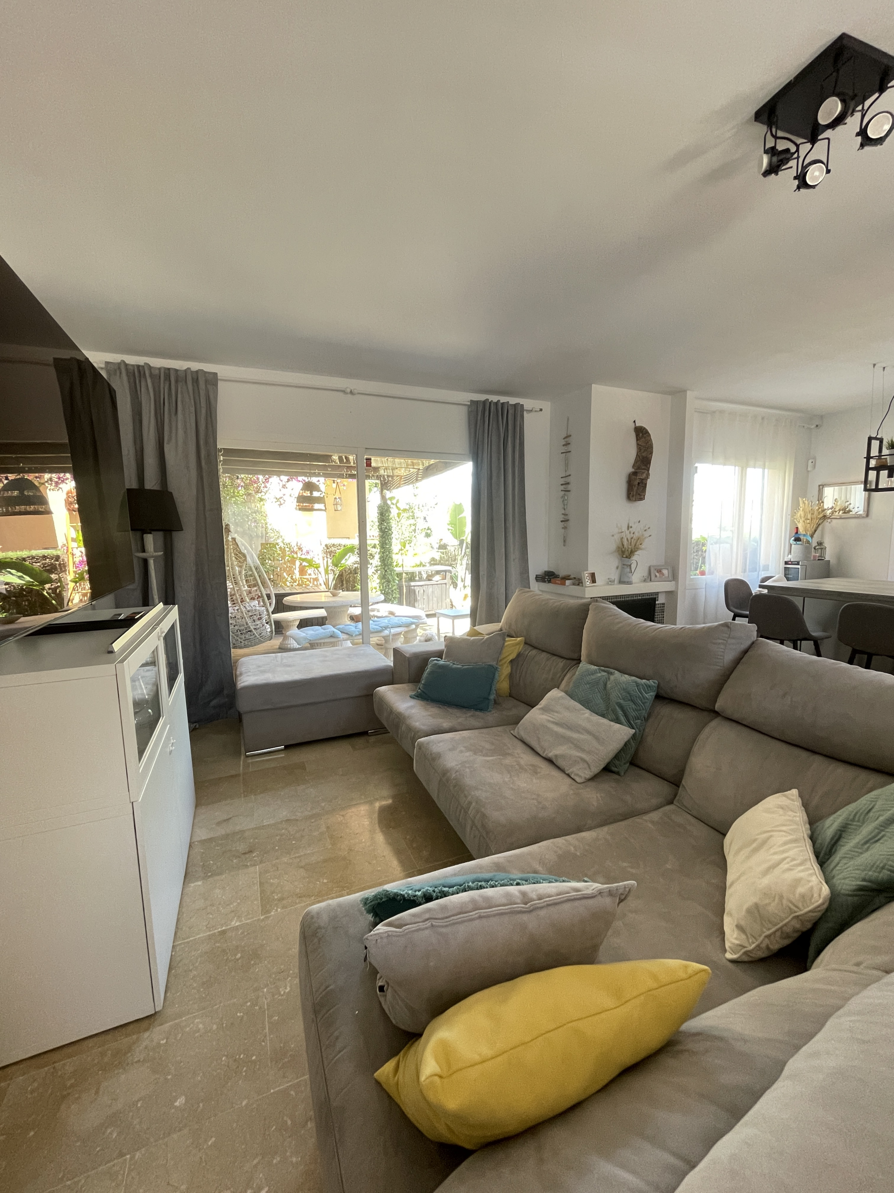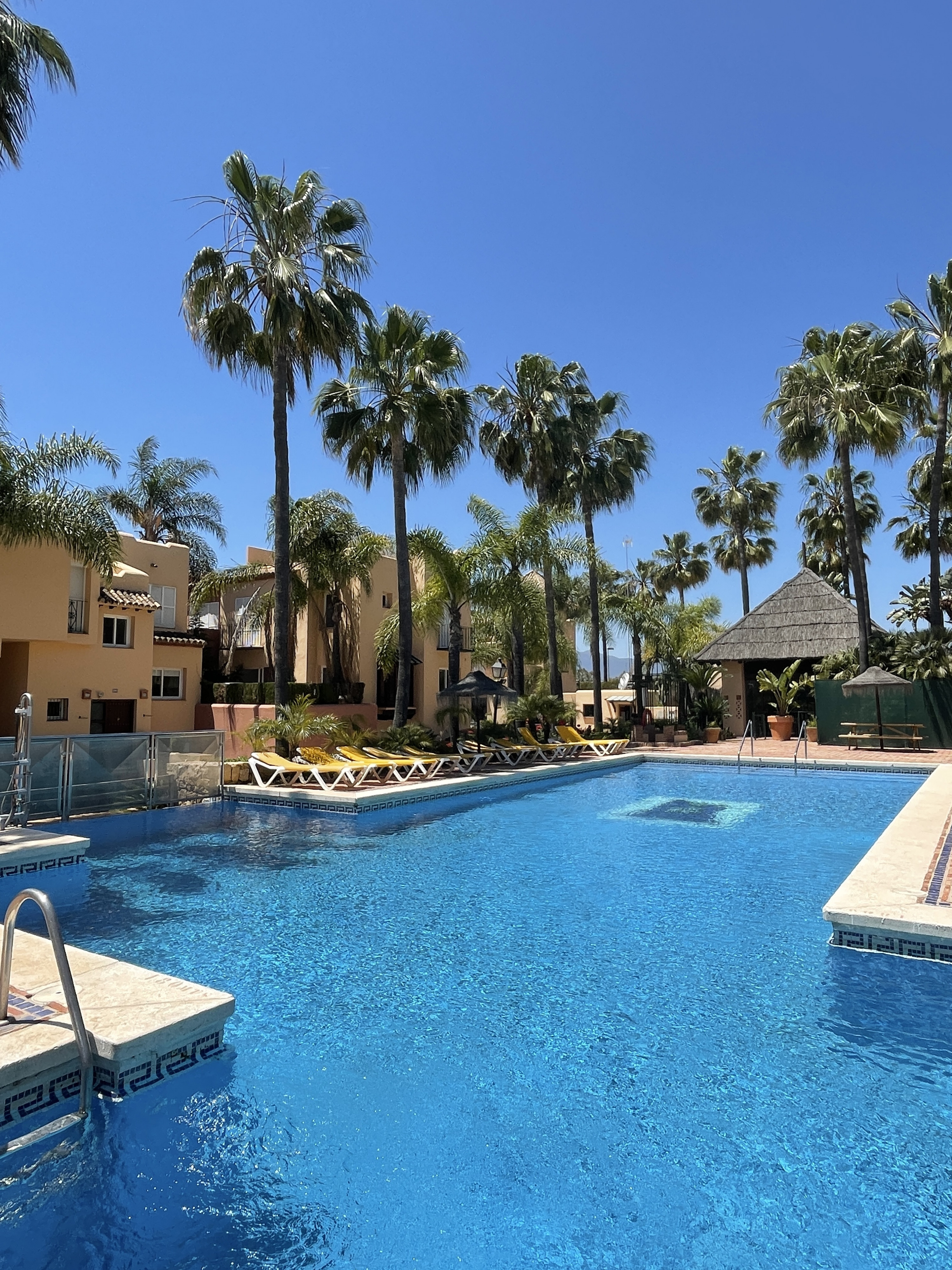 Welcome to this exquisite 4-bedroom Cozy townhouse located in the prestigious Urbanización Condes de Iza. Situated within this gated community, you'll have access to two communal pools, providing a refreshing retreat during your stay. With its spacious layout and desirable amenities, this property offers an ideal vacation destination. The Space - Spanning across 170 m2, this townhouse offers ample space for up to 8 people to comfortably unwind. - The living room welcomes you with its generous size, perfect for relaxing and spending quality time with your loved ones. - To enhance your experience, step outside into the beautiful garden, complete with a table and BBQ Grill where you can savor the afternoon sun and enjoy outdoor meals. - Adjacent to the living room, you'll find a lovely kitchen, fully equipped with modern appliances such as a dishwasher, hot water kettle, oven, microwave, toaster, freezer, stove, and refrigerator. - Additionally, the kitchen is stocked with cooking utensils, wine glasses, and trash cans, ensuring convenience during meal preparation. - The dining table provides a charming setting for enjoying your culinary creations. - The townhouse boasts four beautifully appointed bedrooms, accommodating a total of eight guests. - The first, second, and third bedrooms feature queen-size beds, while the fourth bedroom offers two single beds, providing flexible sleeping arrangements. - For your comfort and convenience, there are two bathrooms one with a shower and the other with bathtub, as well as an additional guest toilet. - Toiletries including cleaning products, conditioner, shampoo, soap, towels, toilet paper, hot water, and a hairdryer are all thoughtfully provided. - Your safety is of utmost importance, and as such, the townhouse is equipped with essential safety equipment, including a fire extinguisher, carbon monoxide detector, smoke alarm, and a first aid kit. - Stay connected with the complimentary Wi-Fi access, and enjoy the comfort of central air conditioning throughout the property. - For your convenience, a washing machine, iron, drying rack, and hangers are available. The townhouse also offers superior quality linens, ensuring a comfortable and restful sleep. Guest Access Enjoy the prestigious Urbanización Condes de Iza, a stunning residential development located in the vibrant city of Marbella. Nestled in the heart of the Costa del Sol, this gated community offers a luxurious and secure living environment for its residents and visitors. Urbanización Condes de Iza is renowned for its exceptional amenities and elegant surroundings. As you enter through the gates, you'll be greeted by beautifully landscaped gardens, well-maintained walkways, and a sense of tranquility. The community is meticulously designed to provide a peaceful and relaxing atmosphere, allowing residents and guests to unwind and enjoy their surroundings. One of the highlights of this urbanization is the presence of two communal pools, inviting you to take a refreshing swim or soak up the sun in style. Whether you prefer to lounge poolside with a book or engage in invigorating water activities, these pools offer a fantastic way to enjoy the warm Mediterranean climate. Safety and security are paramount at Urbanización Condes de Iza, ensuring peace of mind for all residents and guests. With controlled access points and 24-hour security personnel, you can feel at ease knowing that your well-being is well taken care of. Getting Around The location of Urbanización Condes de Iza is another notable advantage. Situated in close proximity to the vibrant city of Marbella, you'll have easy access to a wide range of amenities, entertainment options, and cultural attractions. From world-class restaurants and upscale boutiques to picturesque beaches and renowned golf courses, Marbella offers a diverse array of experiences to suit every taste. Additionally, the urbanization's proximity to Puerto Banús adds an extra touch of glamour and excitement to your lifestyle. This glamorous marina is famous for its luxury yachts, high-end fashion boutiques, and bustling nightlife. Whether you're seeking a night of fine dining, dancing at exclusive clubs, or simply enjoying a leisurely stroll along the waterfront, Puerto Banús offers endless entertainment possibilities. Urbanización Condes de Iza also benefits from its close proximity to the Real Club Padel de Marbella, a prestigious sports club where you can engage in paddle tennis, socialize with fellow sports enthusiasts, and enjoy a range of recreational activities. Within walking distance of the urbanization, you'll find convenient shopping options, making it easy to access everyday necessities without having to travel far. However, due to its central location between Marbella and San Pedro, having a car is recommended for exploring the surrounding areas. Taxis and Uber services are also readily available and provide a convenient transportation option. Other details to note - The cleaning fee is included in the total price. - High chairs and cribs can be provided free of charge, upon request. - The pool will only be open from June 01 to September 05.